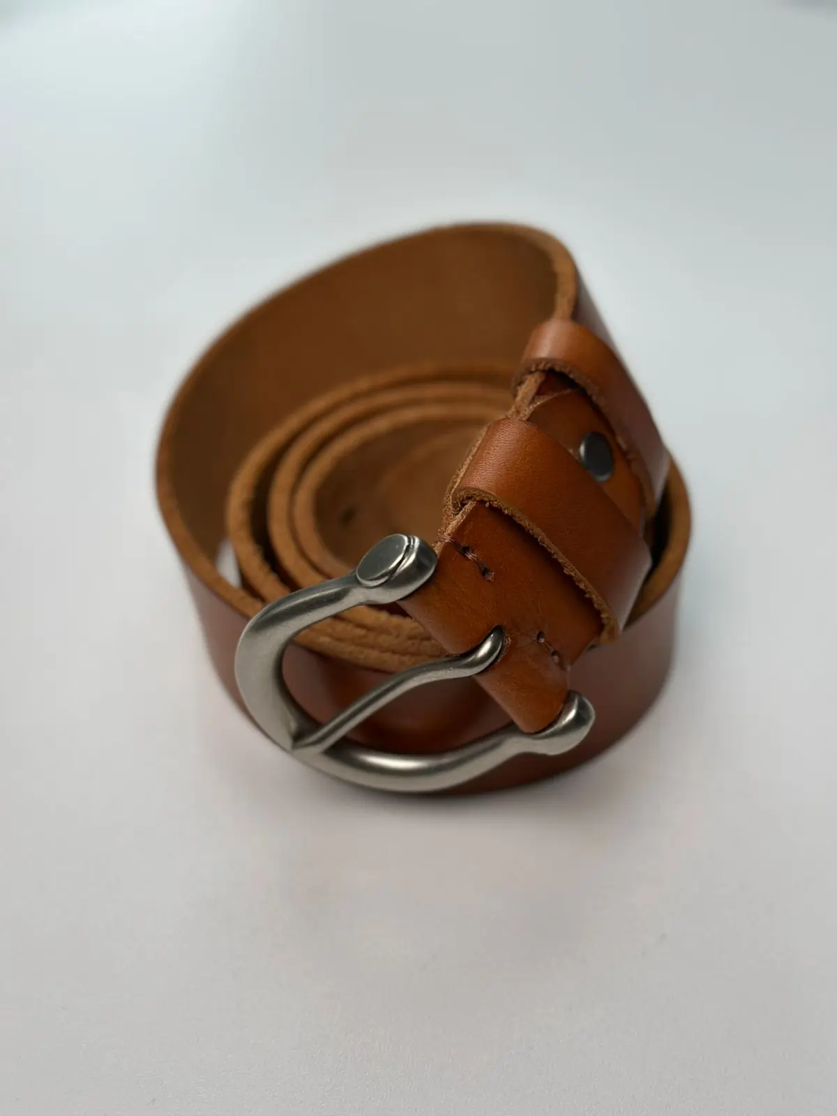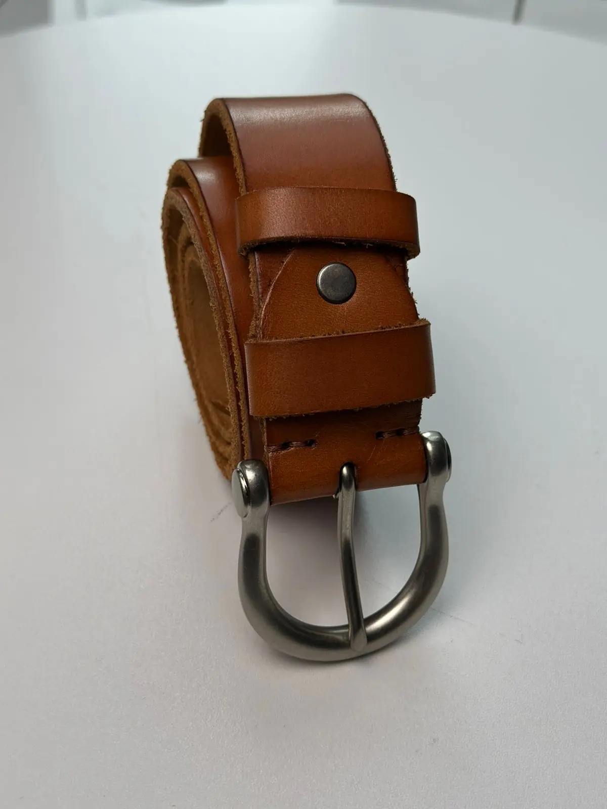 Crafted with 100% pure full-grain leather, this premium brown belt combines timeless design with long-lasting durability. The belt features a smooth, natural leather finish on the outside with a rugged raw interior that highlights its authenticity. Its elegant silver-tone buckle, made from sturdy metal, is designed for both strength and style. The unique buckle design provides a contemporary touch to the classic leather belt look.